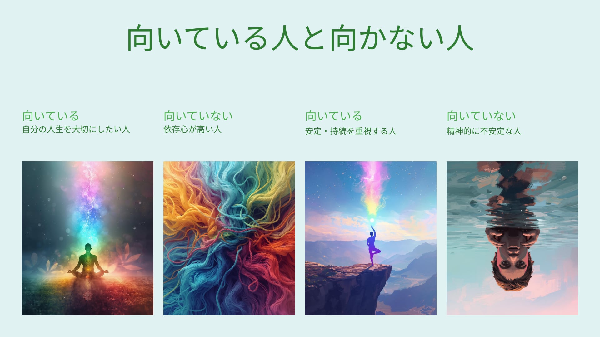 ✔ 人生を自分で引き受ける覚悟がある