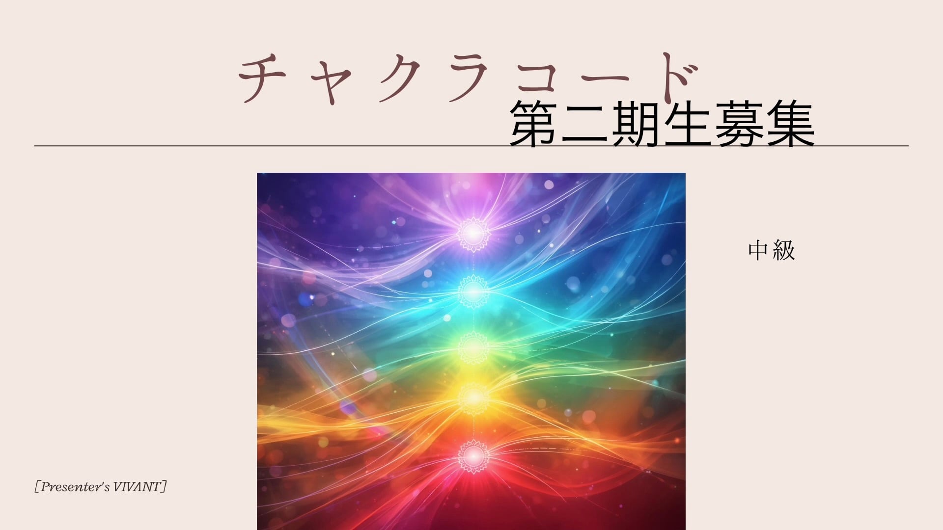 チャクラコード中級講座が、皆様の参加をお待ちしております。この講座では、さらに深いレベルでの自己理解とエネルギーの活用法を探求していきます。